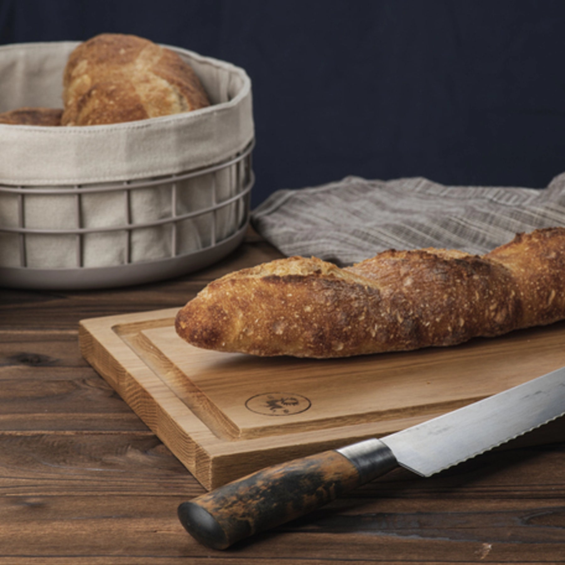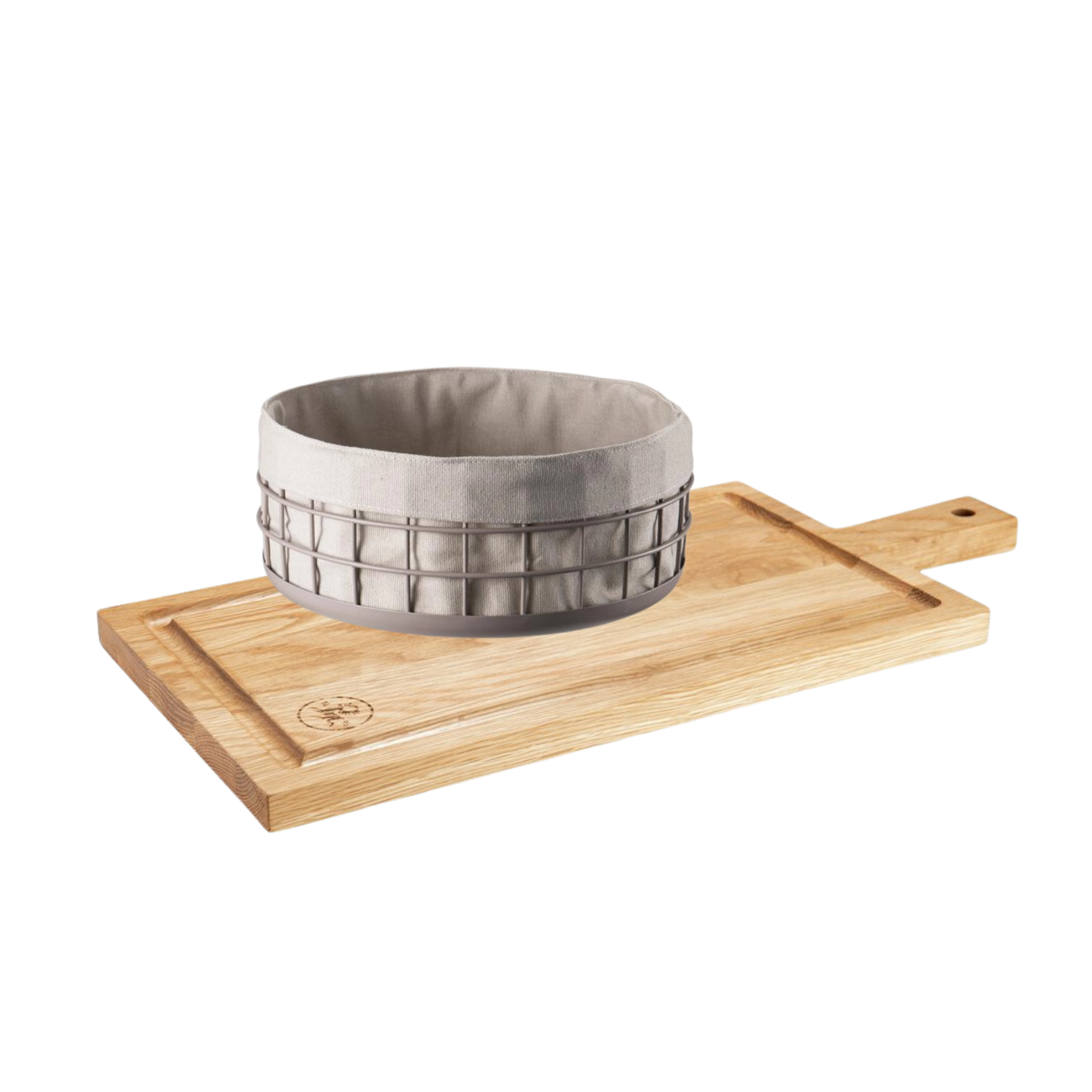 Ikke bare er det et praktisk oppbevaringsalternativ, den er også et stilfult tillegg til ethvert kjøkken eller spisestue. Tar du ut tøyposen kan du også bruke det som et fat til krydder og oljer. Flott skjærefjøl fra Brusletto med blodrand i topp kvalitet som egner seg like godt til servering, som til tilberedning av mat.