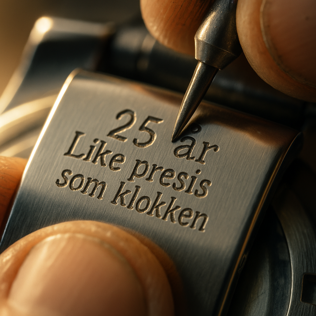 Enten du ønsker navn, dato, jubileumsår eller en personlig hilsen, sørger vi for en gravering som passer uttrykket på uret og anledningen.